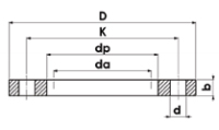 | DN | da (mm) | Code No | dp (mm) | K (mm) | D (mm) | d (mm) | b (mm) | n(adet) | Weight |
